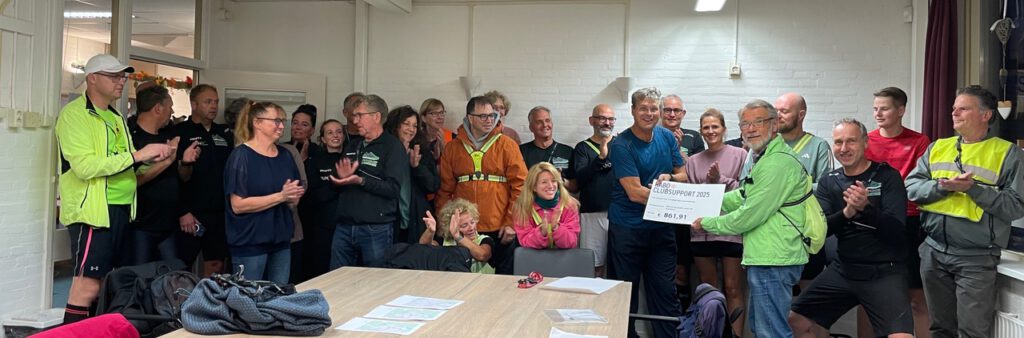Een verrassende avond. Het liep lekker vol met wandelaars en hardlopers en er kwam even iemand op bezoek. Niet zonder redenen. Het kostte even moeite om alle atleten in het zaaltje en stil te krijgen. Ook werd er een vrijwilligster van Buurtcentrum de Pelikaan gevraagd om een mobiel te hanteren voor wat foto’s en toen kwam het moment. Uit handen van André Klijnsma van de Ledenraad van de Rabobank ontvingen wij een cheque met het mooie bedrag van € 861,91. Loopgroep Zaanstreek heeft ook dit jaar meegedaan met Rabo Clubsupport en dit is het mooie resultaat daarvan. André moest snel weg om hard te lopen bij AV Zaanland. Dit bedrag heeft als bestemming shirts en jacks voor de trainers.